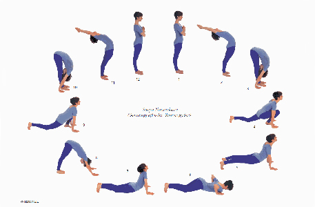 Der Sonnengruß (Sūrya Namaskāra) ist eine traditionelle Yoga-Übungsabfolge mit 12 Positionen, welche fließend geübt werden.